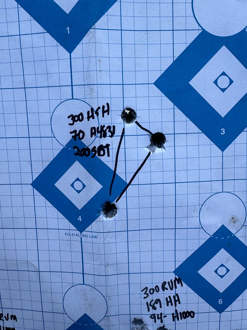 I had a few groups I shot lower in charges and nothing was really noteworthy. Once I pushed up around 70, it started looking a bit better. I loaded up another handful of them and shortened them down .020 as well to see if the seating adjustment will help with anything, but the old 300 isn't doing terrible. I need to get in and adjust the trigger again cause it feels a might heavier than I like, but it is nice to see the old girl trying to earn a spot in the line up for the fall!
