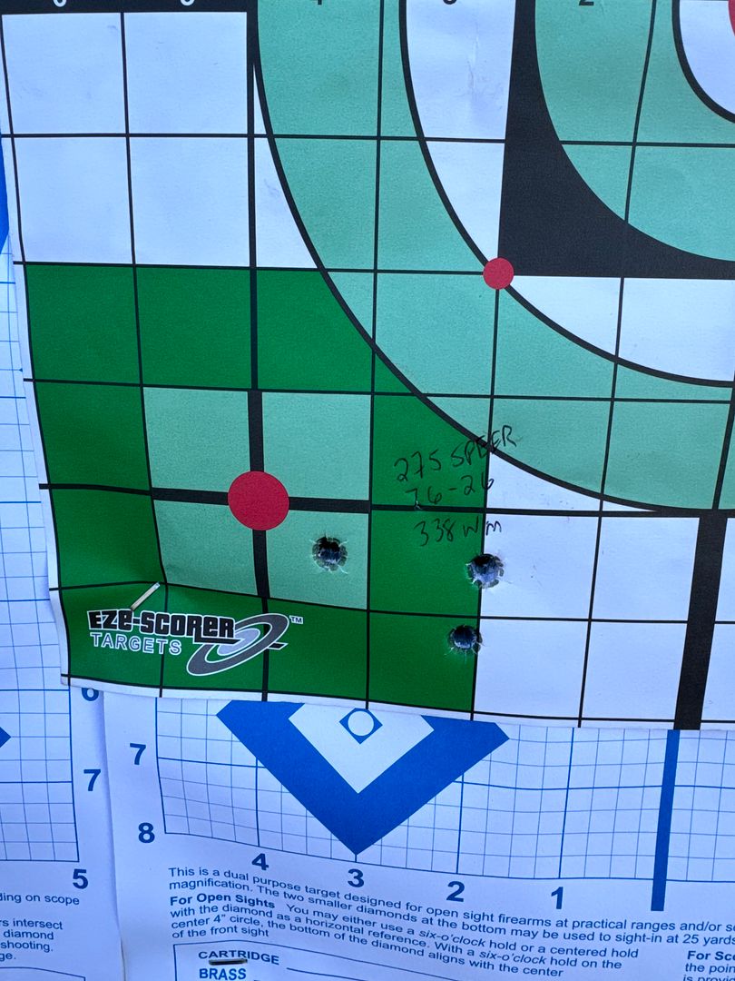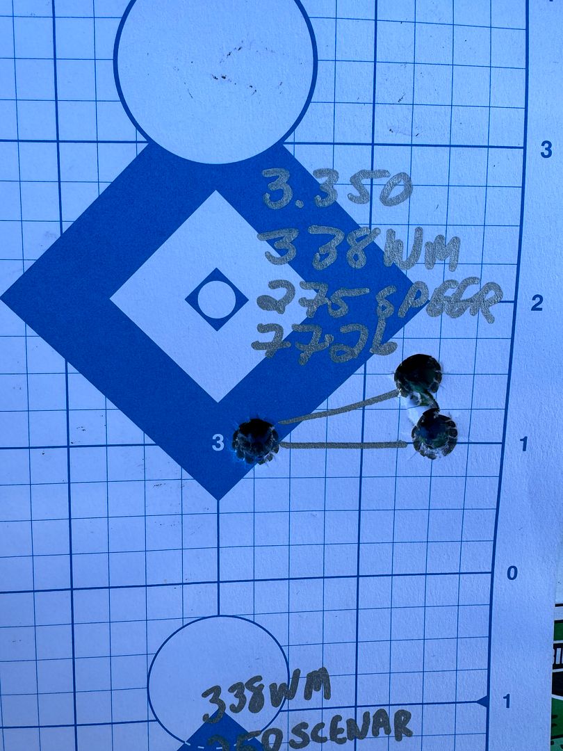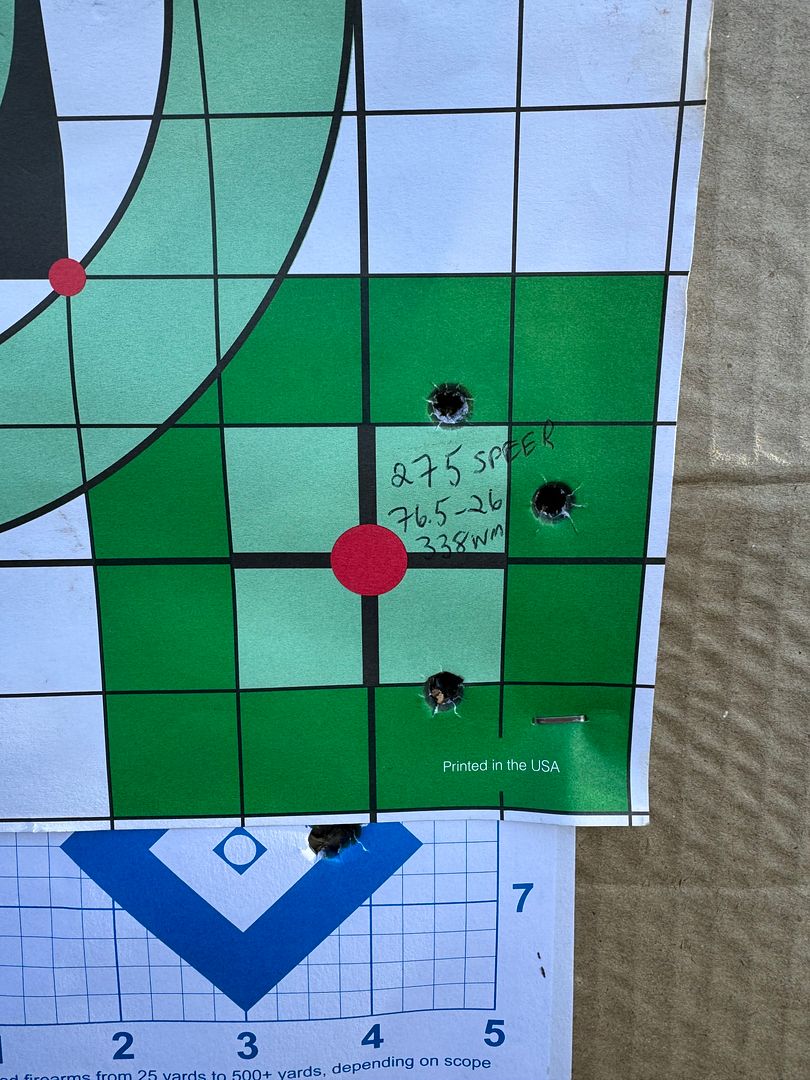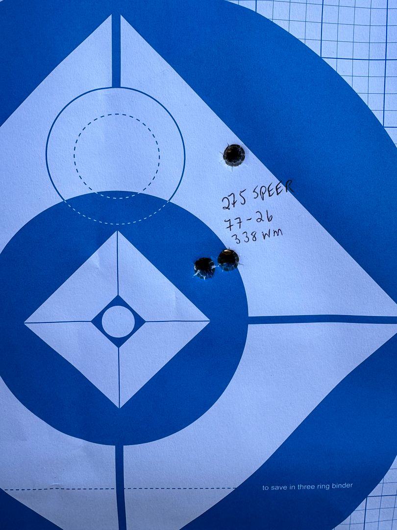 Nothing ground breaking as far as accuracy, but maybe I can work with the seating depth a little with it and see if I can pull them together. Looks like somewhere in the 76.5-77 grain mark will be where I end up. Pretty powerful combo though. I'd love to take that load hunting. Elmer seemed to like them quite alot back in the old days.