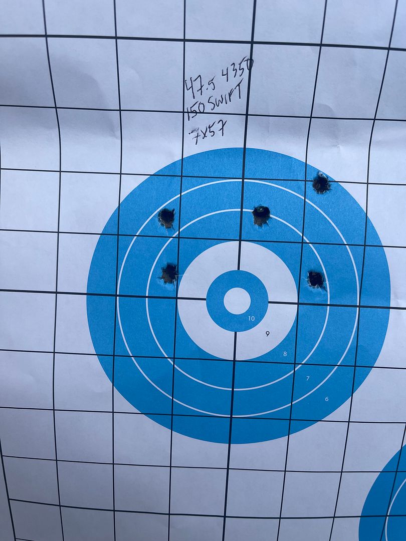 That crossed my mind as well..The H4350 seems to be pretty dang good, Rifle wants to shoot as well! Might be interesting to swap out the scope for a day and see what she can do with more magnification and fine cross hairs.