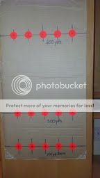 Here is a picture of the target I made for the test. I'm glad there is a range of 600 yards at our club to verify these numbers.