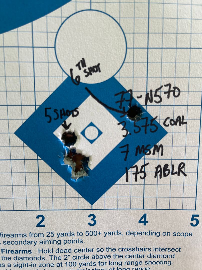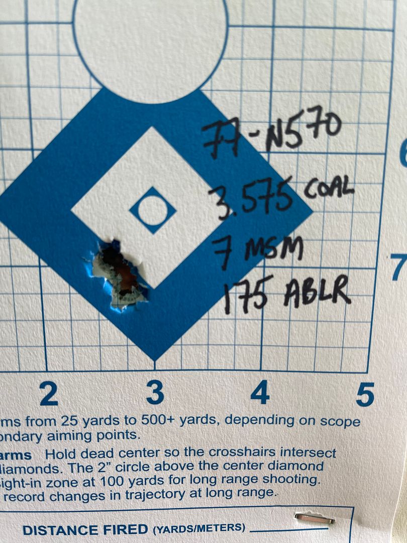 Once I had it zeroed close enough I decided to try some VV N570 and 175 ABLRs. I seated them so they were about 70 off the lands and did a quick load work up.